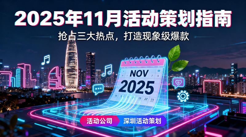 隨著2025年臨近尾聲,11月作為承前啟后的關鍵節點,既是年度沖刺的黃金期,也是品牌沉淀與用戶互動的重要窗口。作為專業的活動公司,如何精準把握趨勢,打造爆款活動?本文結合全球熱點與本地特色,為深圳活動策劃行業提供2025年11月的方向指南與落地策略。